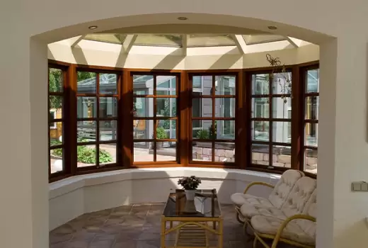 Создаем эркерные окна разных форм, в том числе угловые, полукруглые, трапециевидные, прямоугольные. Такие системы отличаются большей площадью светопропускания, наполняют помещение солнечным светом, а значит, у человека улучшается настроение, он чувствует прилив сил и энергии. Поставка эркерных окон осуществляется как с профилями в базовой расцветке, так и других оттенков. Так, если Вы выберите пластиковые конструкции, предложим ламинацию, в том числе под структуру дерева. Алюминиевые профили можно покрасить под один из цветов каталога Ral. Изготавливаем деревянные эркерные конструкции монтажной шириной 78 или 86 мм. Покраска осуществляется лаком немецкого производства Remmers. Заказчик сам выбирает подходящую цветовую гамму.